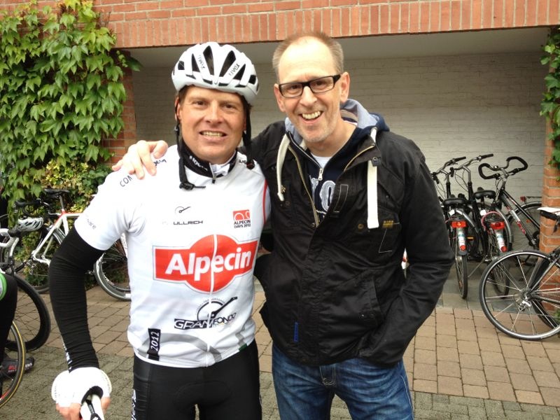 Royale Paparazzi haben sie erwischt und dieses Bild gemacht: Jan Ulrich und Norbert Slow Hand Chef-Kaleschen-Konstrukteur Kutschenwart-Mobilitätbeauftragter im präsidialen Auftrag Uhlenbrock. Trainieren die beiden etwa für den Rosenmontagszug in Sieglar? Darüber liegt bedauerlicherweise keine bestätigte Meldung aus dem Palast vor. Wir hoffen jedenfalls, dass die Bergfahrten bei diesem Rosenmontagszug in Loor nicht ganz so anstregend sind wie das, was die beiden sich am Berg antun bzw. angetan haben ... Ein passendes Pedalprojekt wäre es ja vielleicht, die Könige-Kutsche ein wenig voranzubringen. 300 Watt treten die doch mit links!